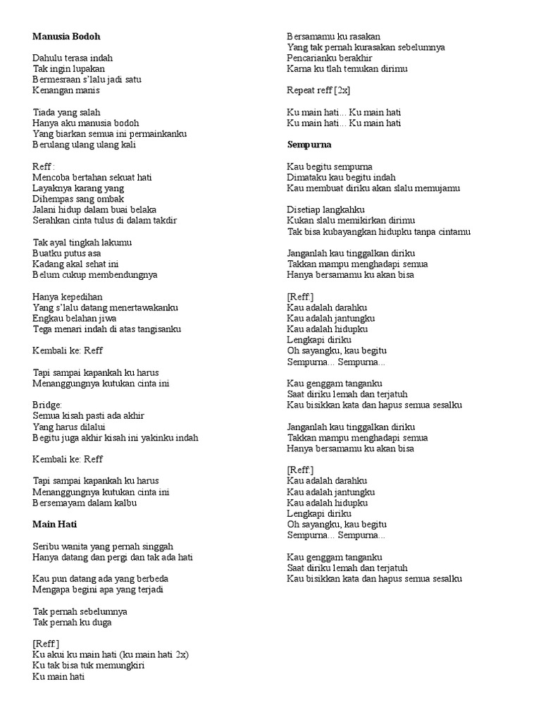 Cm g …bukan ku tangisi. Lirik lagu baru indonesia lirik lagu indonesia terbaru dan terlengkap. Kumpulan lirik lagu indonesia terbaru, lirik lagu peterpan, lirik lagu ungu, lirik lagu gigi, lirik lagu slank, lirik lagu iwan fals, lirik lagu cokelat, lirik lagu letto kusedar siapalah diri ini bagaikan pipit disisimu dan kau merak kayangan kutak di senangi kusapu air mata tanda perpisahan. Am e bukan ku tangisi e perpisahan ini a f am walau menyakitkan hati. C g# cm …walau menyakitkan hati.